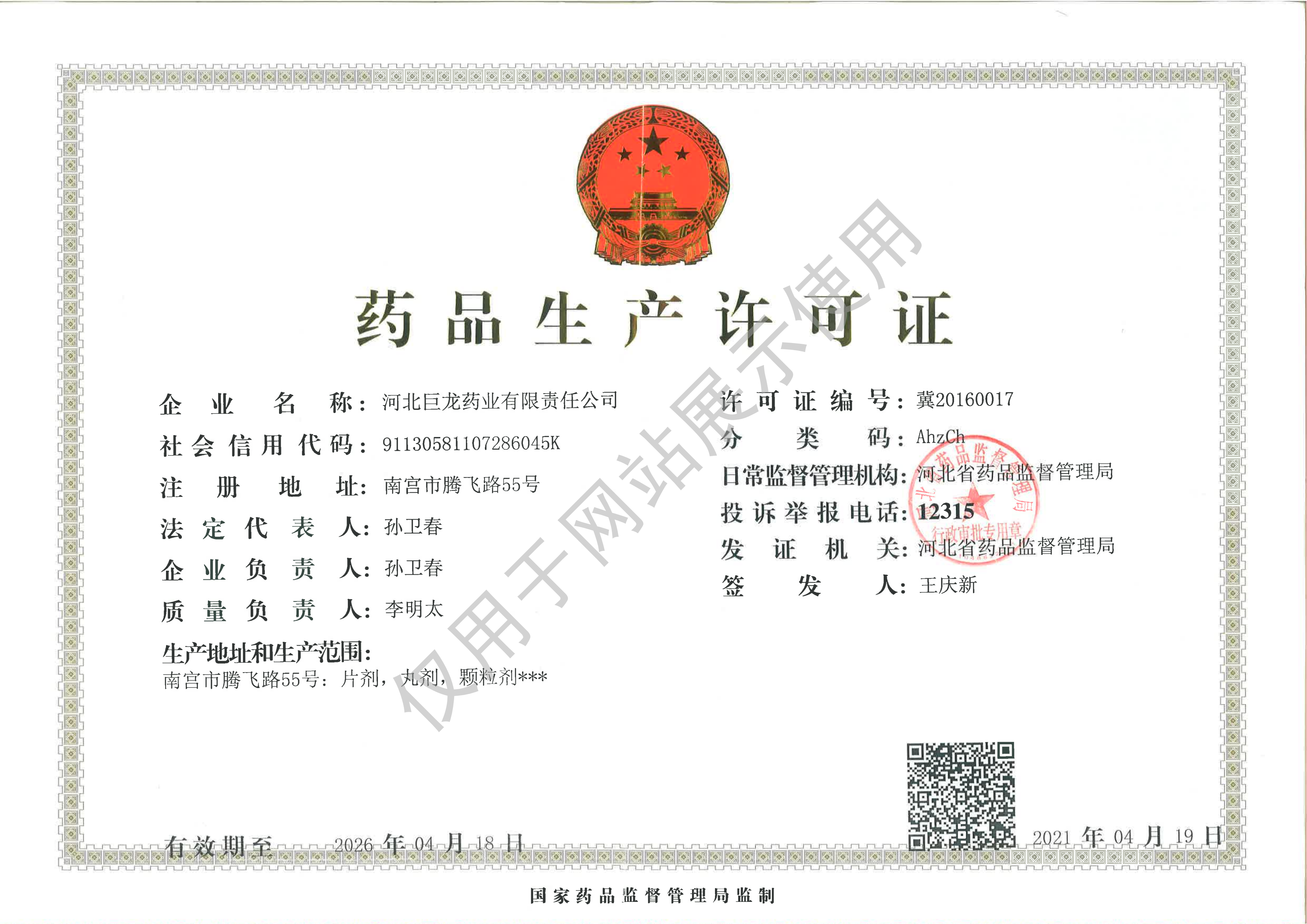 河北巨龍藥業(yè)有限責任公司,位于南宮市東部工業(yè)聚集區(qū),是一家集生產、銷售、科研為一體的中、西藥品生產企業(yè);是河北省醫(yī)藥行業(yè)協(xié)會主席團企業(yè)、省高新技術產業(yè)化示范企業(yè)、省誠信企業(yè)、省高新技術產業(yè)協(xié)會理事、省著名商標企業(yè),南宮市的一家藥品生產企業(yè)。其前身南宮市制藥廠,1973年建成并投產,1996年依法破產,1999年改制重建成股份制企業(yè)。2005年由河北鑫春建筑建材有限責任公司整體買斷收購,其后陸續(xù)注入資金2000多萬元,開發(fā)并上市了原國家中藥四類新藥(獨家品種)小兒清肺顆粒,被認定為省高新技術產業(yè)化示范基地。2015年企業(yè)通過新版藥品GMP認證。